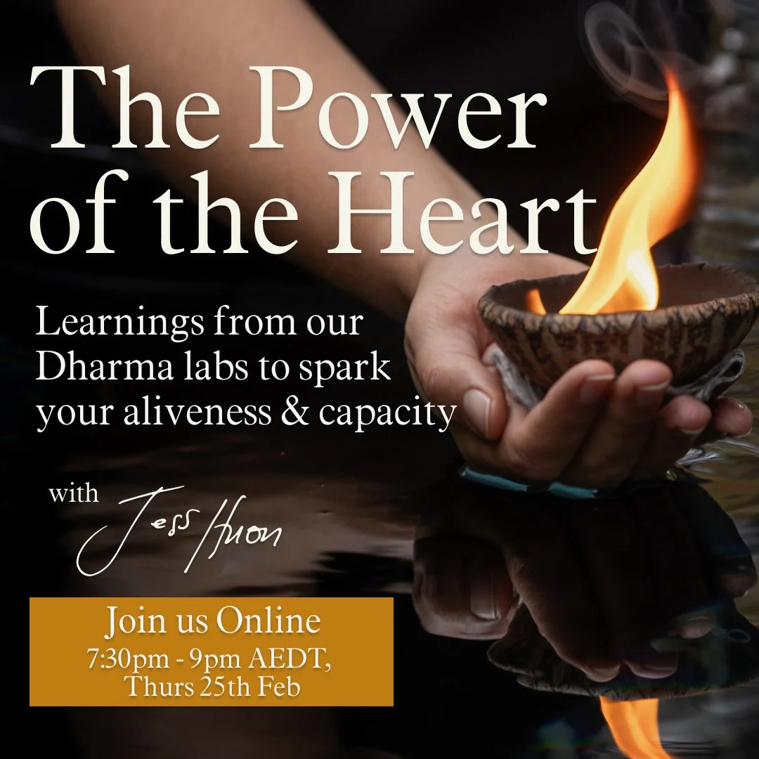 Back to All Events The Power of the Heart - Online Class Thursday 26 February 2026 7:30 pm 9:00 pm Google Calendar ICS The Power of the HeartOnline, Thursday 26th February 7:30pm - 9pmCost - $29Join me for this online class on the power of the heart, where I’ll be sharing learnings from last year’s Collective Well mentorship, on what the Buddha’s heart teachings can offer us in these times. Book Here